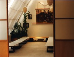 Am Samstag und Sonntag sind die Zazen-Zeiten anders, aber der Ablauf ist in etwa gleich. Am Samstag, nach Einführung und Zazen gibt es im Teeraum, bei einer Schale Tee, für alle die Möglichkeit Fragen zu stellen oder einfach zwanglos zusammen zu sitzen und Eindrücke auszutauschen.